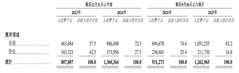 其总体订单量呈逐年添加态势,从2023年和2024年的15。01亿元、19。72亿元增加至2025年前9个月的19。32亿元。且同期,该公司畅通范畴的收益别离占同期总收益的的57。5%、72。5%及83。2%。