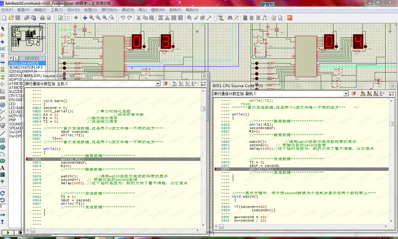 3。正在Proteus里点逐帧运转,或者间接点调试,若是没呈现调试框,能够点芯片左键调出源代码。